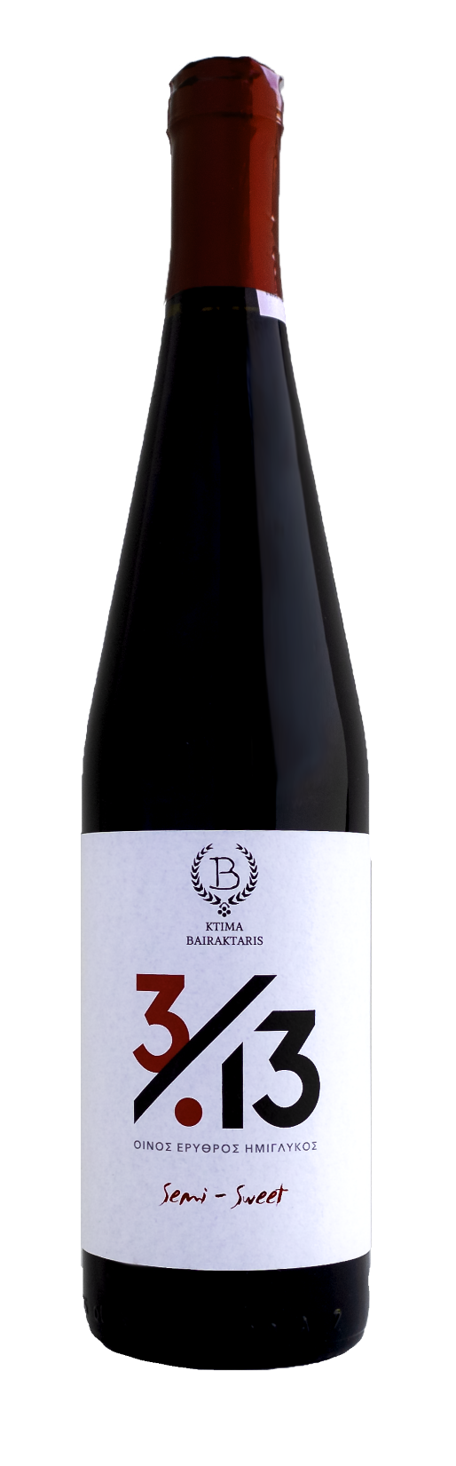 “313 symbolizes the certification of the protected designation of origin for the Semi-Sweet Agiorgitiko even before the establishment of PDO zones. It is essentially a brief expression of the composition of the ideal Semi-Sweet from Agiorgitiko, which must have 13% alcohol and 3 Baumé remaining sugars . A lively and at the same time aged red Semi-sweet with fresh aromas of strawberry and plum together with an intense acidity make it an ideal accompaniment for sweet and savory meals.”